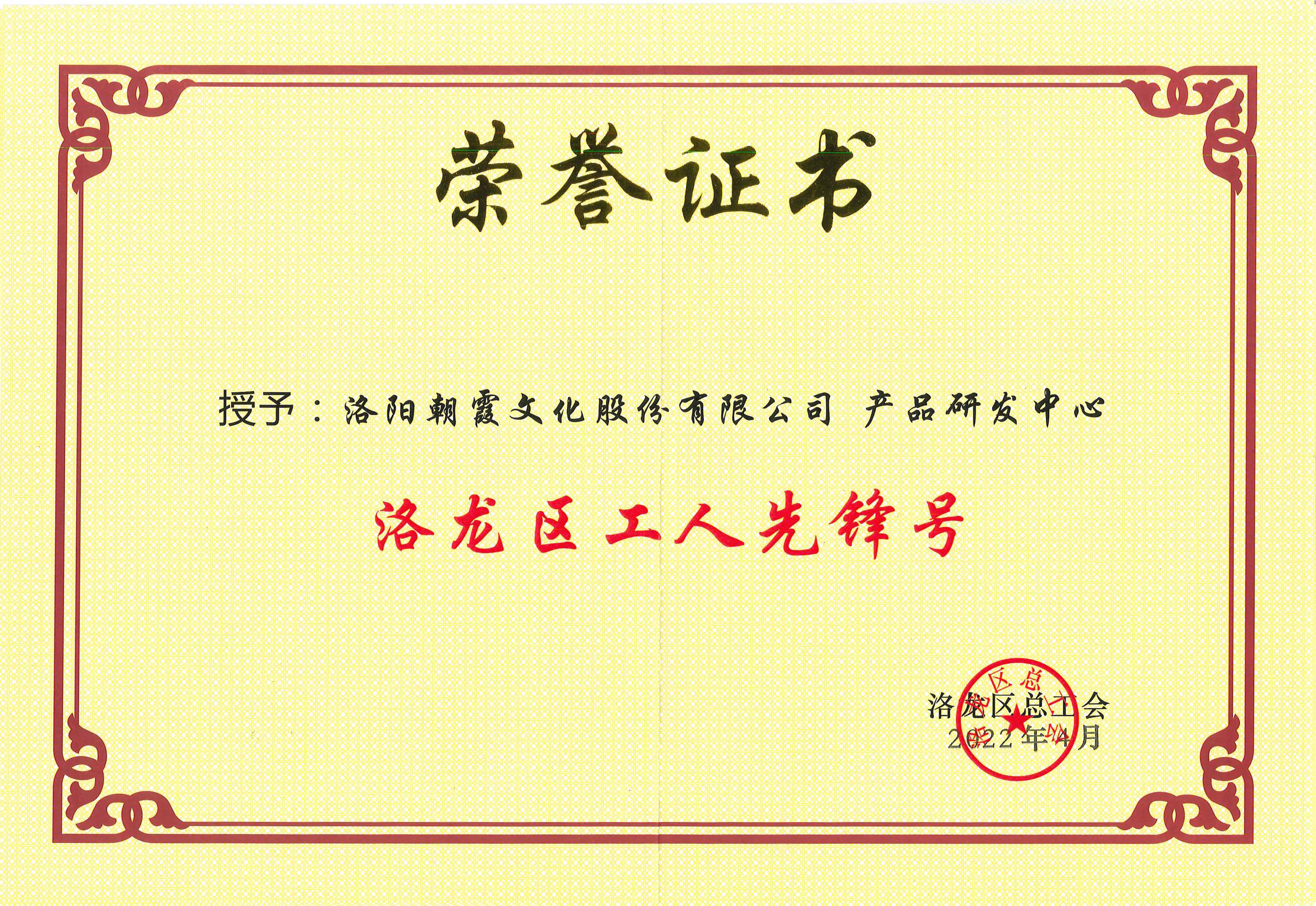 2022年洛龙区工人先锋号